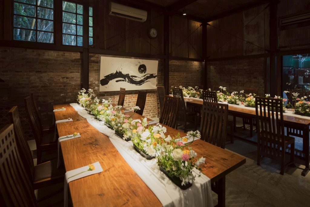歴史ある酒蔵の敷地内に佇むこの空間は、落ち着いた雰囲気の中で
