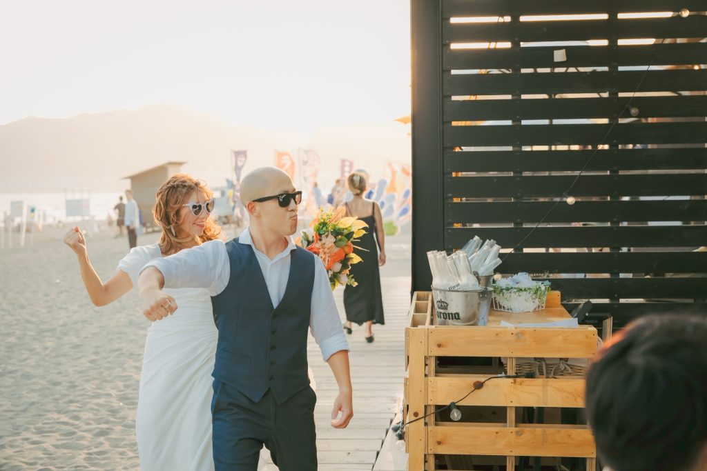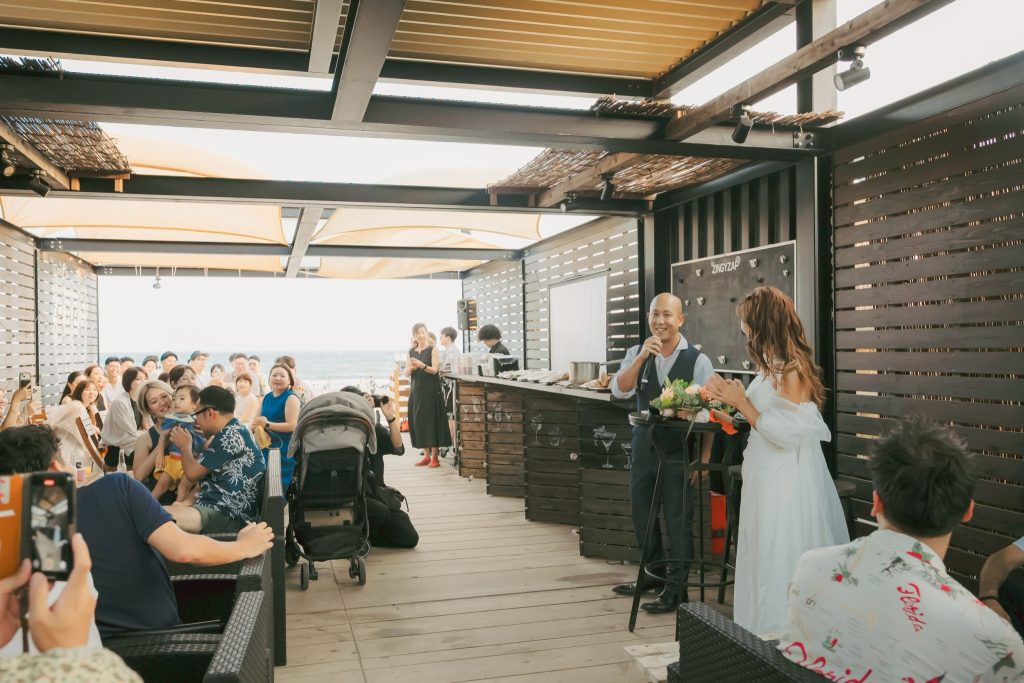 人生の新しい一歩を踏み出す海の家での結婚式。